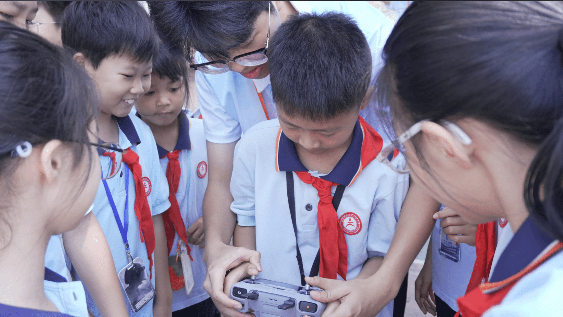 活动分为“安全护航”“科学探秘”“科技赋能”三个特色环节展开。学生党员借助模拟实操和趣味互动问答,深入浅出地传授了防诈骗与防溺水的实用知识,为孩子们筑起了坚实的暑期安全屏障。随后,他们引领孩子们亲手操作趣味化学实验,并体验无人机翱翔天际的奇妙,激发了孩子们对科学的浓厚兴趣。