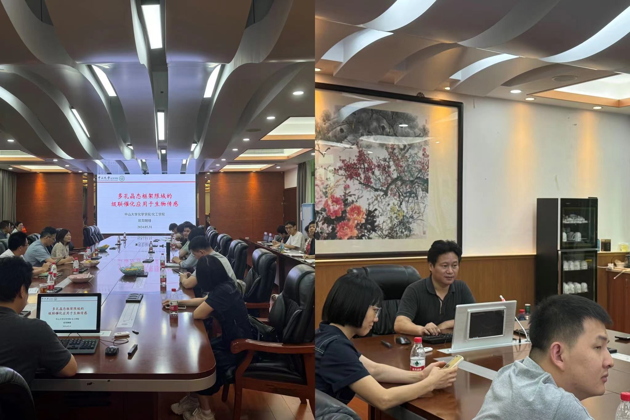 欧阳钢锋教授,英国皇家化学会会士、国家杰出青年科学基金获得者、科技部中青年科技创新领军人才、广东省“珠江学者”特聘教授,现任中山大学化学工程与技术学院院长。欧阳教授就《多孔晶态材料限域的级联催化应用于生物传感》进行了专题讲座。他详细阐述了多孔晶态框架材料在环境催化领域的应用,并深入探讨了酶@MOFs/COFs传感活性的影响因素、不同封装策略对酶活性的影响,以及应用在酶级联催化反应的特点和优势。欧阳教授的研究成果对开云官网众多教师的研究具有重要的借鉴意义。