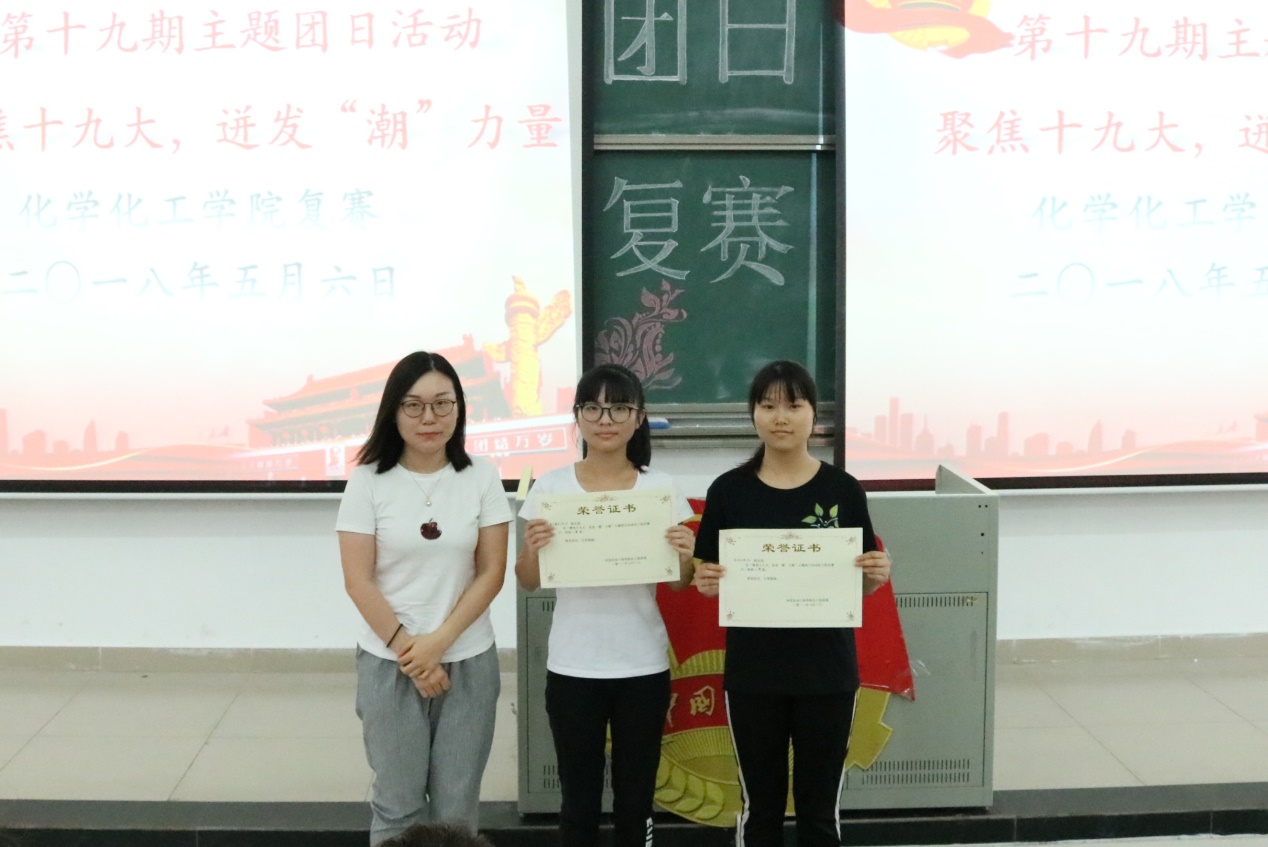 严丽纯老师点评结束后,主持人公布了复赛结果:应化173荣获一等奖,化工171、应化174同时获得二等奖,高分子173、高分子163、材化162并列三等奖,而网络视频奖则由材化162所得。